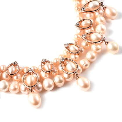 Lucy Q Pearl Drop Collection - Pink Freshwater Pearl and Natural Cambodian Zircon Necklace (Size 19) in Rose Gold Overlay Sterling Silver