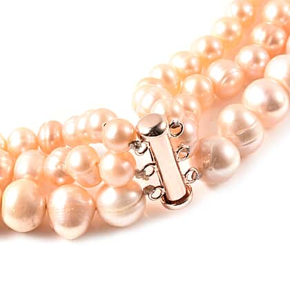 - These pink freshwater pearls are produced in triangle and biwa shells which are located in China