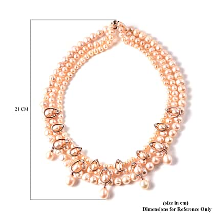 LucyQ Pearl Drop Collection - Pink Freshwater Pearl and Natural Cambodian Zircon Necklace (Size 19) in Rose Gold Overlay Sterling Silver