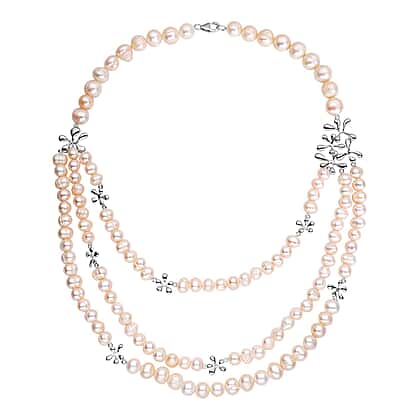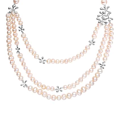 Lucy Q Splash Collection - Fresh Water Pearl Vintage Triple Strand Necklace (Size - 20) in Rhodium Overlay Sterling Silver