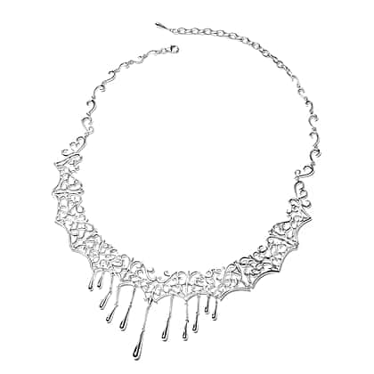 LucyQ Lace Drip Necklace in Rhodium Plated Silver 68 Grams 14.5 with 4 inch Extender