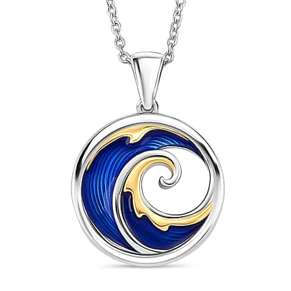 Bring the fluid beauty of ocean waves with this LucyQ wave collection pendant, featuring a blue enamel design with a cable chain. The intricate design of the swirling wave in the necklace creates a sense of fluidity, making it ideal for special occasions as a statement piece. Meticulously crafted from hypoallergenic 925 sterling silver, this ensures comfort to the skin with durability. Carefully set with a combination of yellow gold plating and platinum overlay on sterling silver, this pendant ensures enduring shine. The lobster clasp offers security for worry-free wear throughout the day. Give yourself this exquisite piece and enjoy the beauty of true artistry.