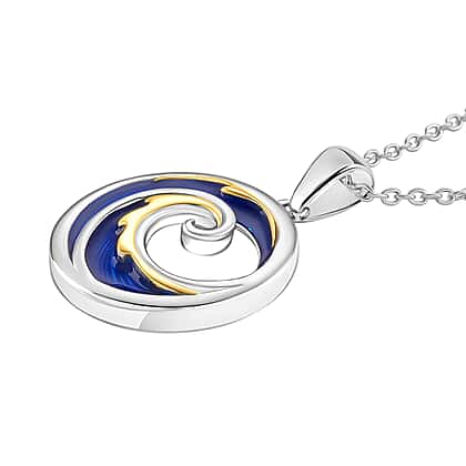 LucyQ Wave Collection - Enamelled Pendant with Cable Chain (Size 18-24) in Yellow Gold Plated & Platinum Overlay Sterling Silver