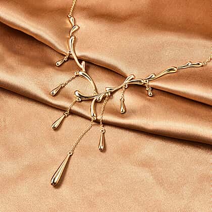 LucyQ Yellow Gold Overlay Sterling Silver Adjustable Drip Necklace (Size 16-20), Silver wt. 20.12 Gms