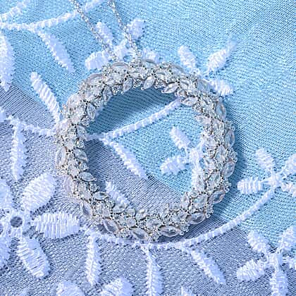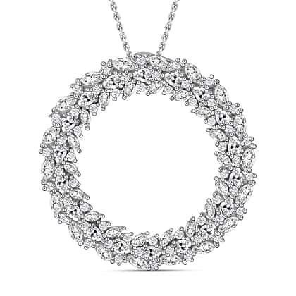 Lustro Stella - Cubic Zirconia Circle Pendant with Chain (Size 20) in Rhodium Overlay Sterling Silver, Silver Wt 8.50 GM