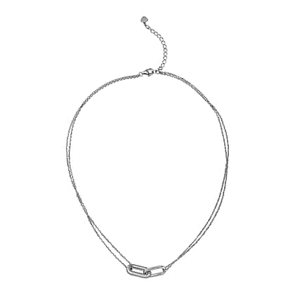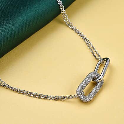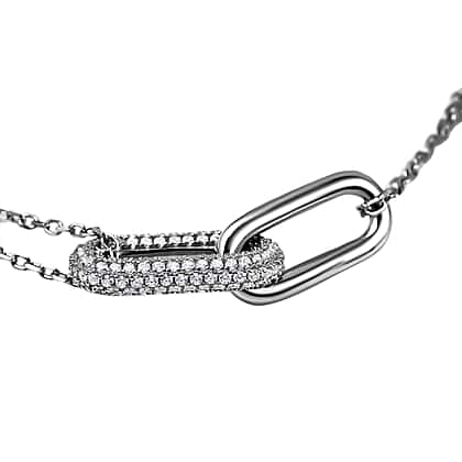 Lustro Stella - Cubic Zirconia Pave Link Necklace (Size - 16-2 Inch Ext.) in Rhodium Overlay Sterling Silver