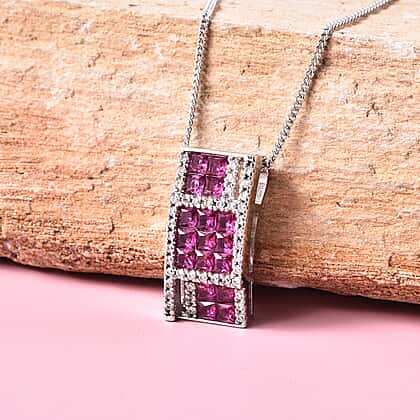 Lustro Stella - Simulated Ruby and Simulated Diamond Pendant with Chain (Size 18) in Platinum Overlay Sterling Silver
