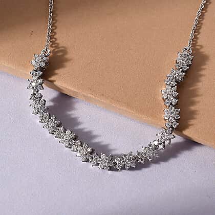 Lustro Stella Made with Finest CZ Necklace Size 18 in Platinum Plated Sterling Silver