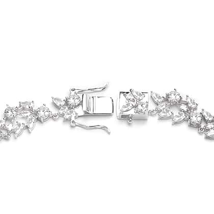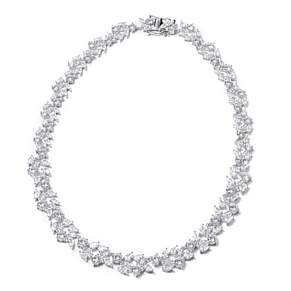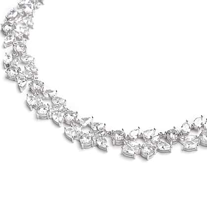 Lustro Stella Simulated Diamond Necklace (Size 18) in Rhodium Overlay Sterling Silver, Silver Wt. 38.90 Gms