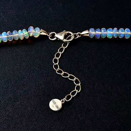 Luxoro 14K Yellow Gold AAA Ethiopian Opal AGI Certified Necklace (Size 18 - 2 Ext) 65.00 Ct.