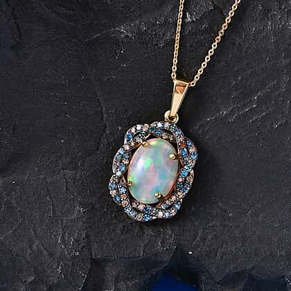 Luxuriant - AAA Ethiopian Opal & SI-G-H Lab Grown Multi Diamond Cluster Halo Pendant with Chain (Size 20) in 18K Vermeil Yellow Gold Plated Sterling Silver 5.08 Ct