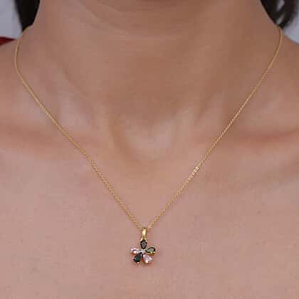 Luxuriant - Multi-Tourmaline & Lab Grown Diamond (SI-G-H) Pendant with Chain (Size 20) in Yellow Gold Plated Sterling Silver 1.00 Ct