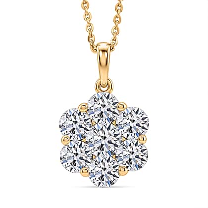Luxuriant - SI-G-H Lab Grown Diamond Cluster Pendant with Chain (Size 20) in 18K Vermeil Yellow Gold Plated Sterling Silver 2.00 Ct.