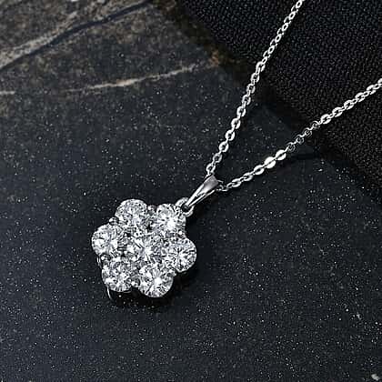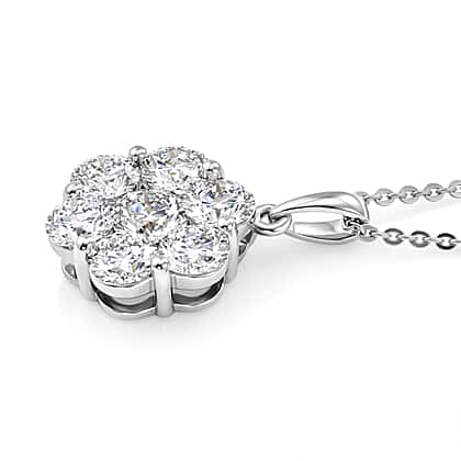 Luxuriant - SI-G-H Lab Grown Diamond Cluster Pendant with Chain (Size 20) in Rhodium Overlay Sterling Silver 2.00 Ct.
