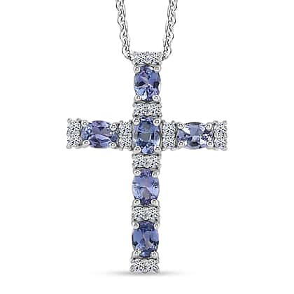 Luxuriant - Tanzanite & Lab Grown Diamond (SI-G-H) Cross Pendant with Chain (Size 20) in Rhodium Overlay Sterling Silver 1.25 Ct.