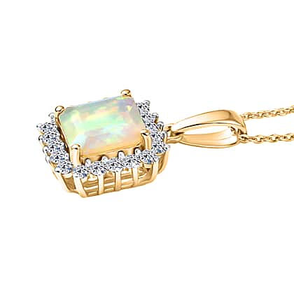 Luxuriant- Premium Faceted Ethiopian Opal & SI-G-H Lab Grown Diamond Pendant with Chain (Size 20) in 18K Vermeil Yellow Gold Plated Sterling Silver 1.75 Ct.