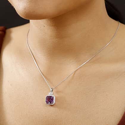 Luxuriant 9K White Gold AGI Certified Lab Grown Color Change Sapphire & Lab Grown Diamond Pendant with Chain (Size 18) with Spring Ring Clasp 6.03 Ct.
