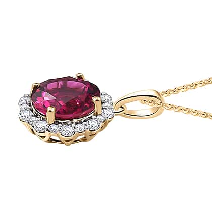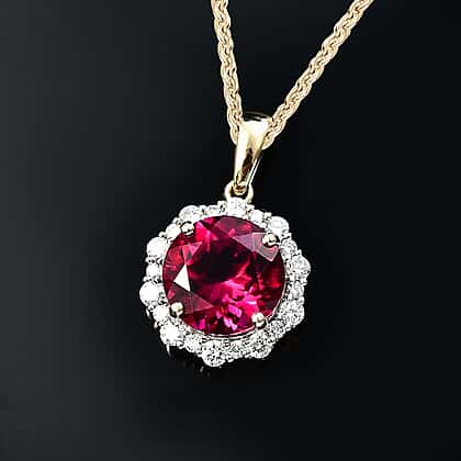 Luxuriant 9K Yellow Gold AGI Certified AAA Lab Grown Bixbite & Lab Grown Diamond (VS-EF) Pendant with Chain (Size 20) 3.51 Ct.