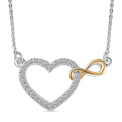 LUXURIANT Lab Grown Diamond Infinite Heart Necklace (Size 20) in 18K Vermeil Yellow Gold Plated and Rhodium Overlay Sterling Silver