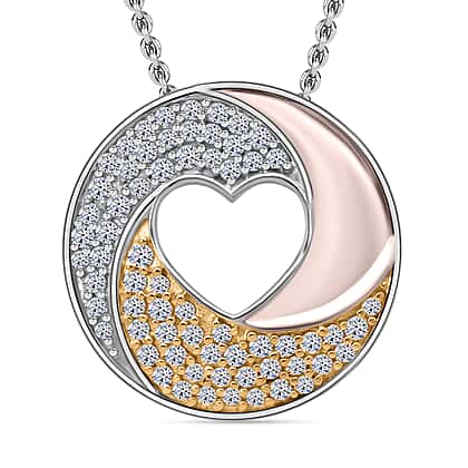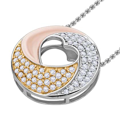 LUXURIANT Lab Grown Diamond (SI/G H) Heart Pendant with Chain (Size 18+2 Ext.) with Spring Ring Clasp in Rose and Yellow Gold Plated and Rhodium Overlay Sterling Silver 0.34 Ct.