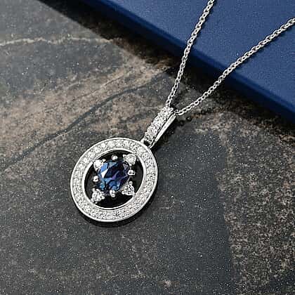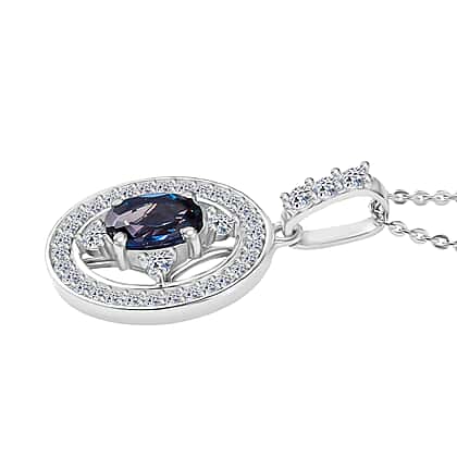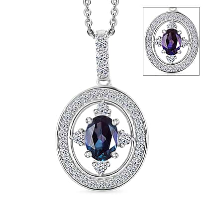 Luxuriant Lab Grown Alexandrite & White Zircon Pendant with Chain (Size 20) in Rhodium Overlay Sterling Silver 1.53 Ct.