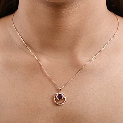 Luxuriant Lab Grown Bixbite Pendant with Chain (Size 20) in 18K Rose Gold Plated Sterling Silver