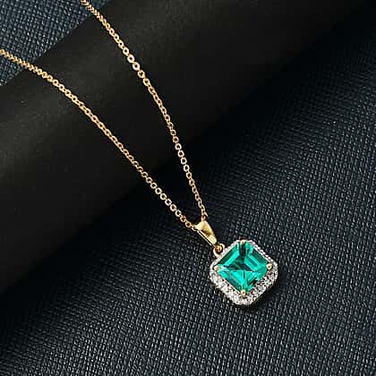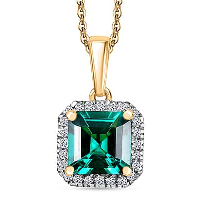 Luxuriant Lab Grown Columbian Emerald & Lab Grown Diamond (SI-GH) Pendant with Curb Chain (Size 20) in 18K Vermeil Yellow Gold Plated Sterling Silver 1.72 Ct.