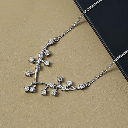 LUXURIANT 1 Ct. Lab Grown Diamond Floral Vine Necklace (Size - 20) in Rhodium Overlay Sterling Silver (SI-GH)