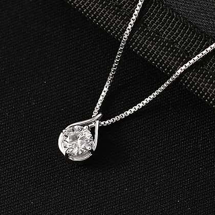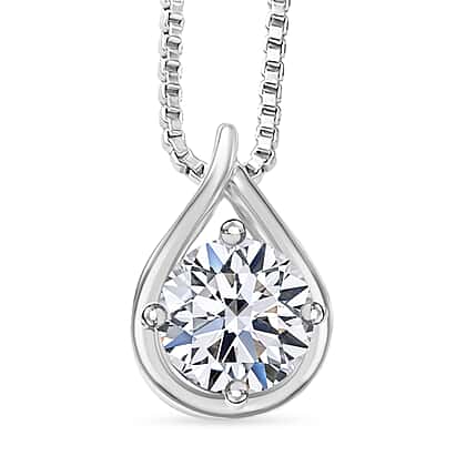 LUXURIANT Lab Grown Diamond Pendant with Cable Chain (Size - 20) in Rhodium Overlay Sterling Silver 1.00 Ct.