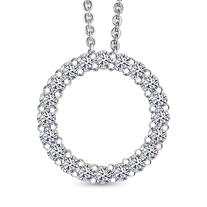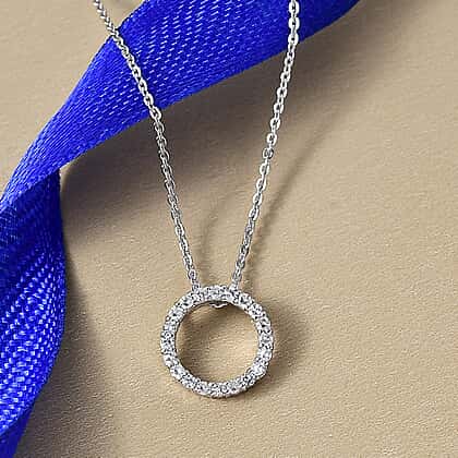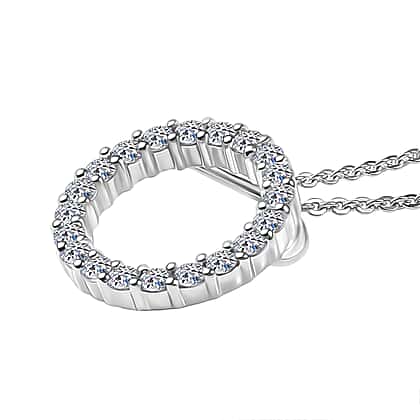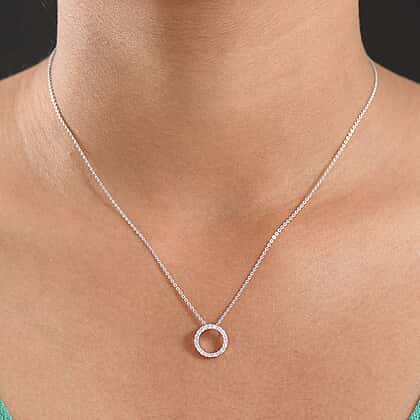 Timeless circular pendants will always hold a forever place in everyone's heart, such is their appeal! Like this openwork circular lab-grown diamond pendant. This accessory features a round frame at the centre which is adorned with round diamonds in a seamless halo. Crafted in rhodium overlay sterling silver, this charm comes attached with a dainty chain. The openwork design makes for a standout style and helps to add a sense of wholeness and balance to the design. This pendant is perfect for individuals drawn to quiet luxury.