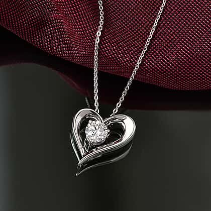Inspired by the heart theme, this Lab Grown Diamond Solitaire Heart Pendant with Chain is a timeless symbol of love and simplicity. Set in rhodium overlay sterling silver, the open heart design gently cradles a brilliant round lab-grown diamond that dazzles with clarity and fire—nearly indistinguishable from its natural counterpart. The hypoallergenic and tarnish-resistant finish makes it perfect for sensitive skin and everyday wear. Designed with sentiment and subtle sparkle in mind, it captures the desire for connection and effortless beauty. The 20-inch chain adds versatility, sitting gracefully on the neckline for layering or wearing solo.