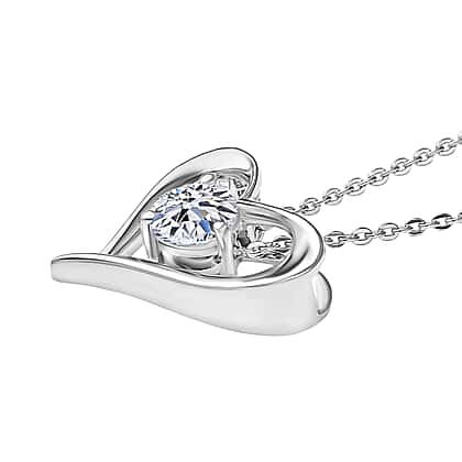 LUXURIANT 0.50 Ct. Lab Grown Diamond Solitaire Heart Pendant with Chain (Size 20) in Rhodium Overlay Sterling Silver (SI-GH)