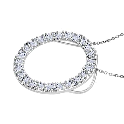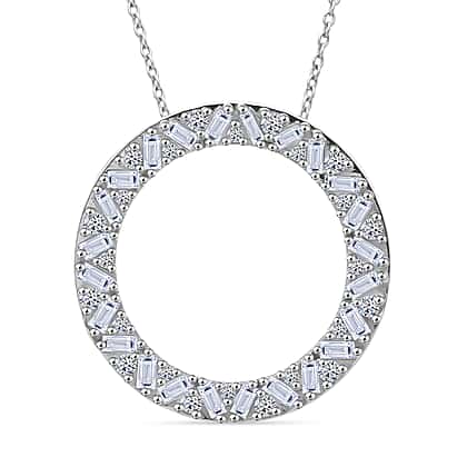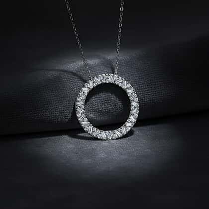 LUXURIANT 1 Ct. Lab Grown Diamond Circle Pendant with Chain in Rhodium Overlay Sterling Silver