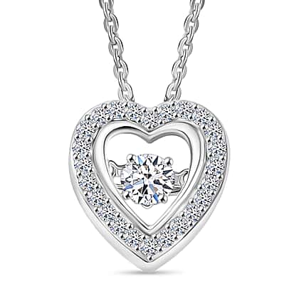 Luxuriant Lab Grown Heart Dancing Diamond (SI-GH) Pendant with Chain (Size 20) in Rhodium Overlay Sterling Silver