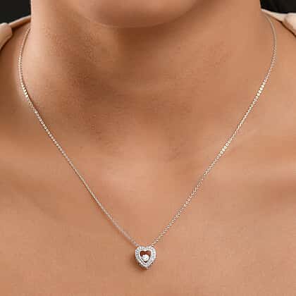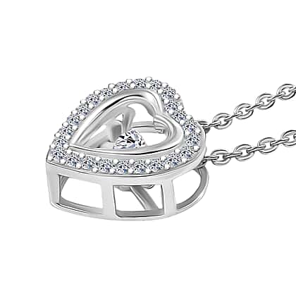 Luxuriant Lab Grown Heart Dancing Diamond (SI-GH) Pendant with Chain (Size 20) in Rhodium Overlay St