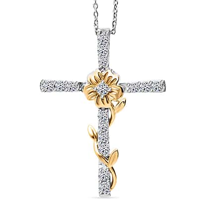 Luxuriant SI-GH Lab Grown Diamond Cross Pendant with Chain (Size 18-2 inch Extender) in 18K Vermeil Yellow Gold Plated Sterling Silver