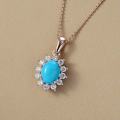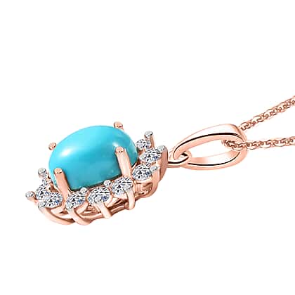 DOORBUSTER DEAL - Luxuriant Sleeping Beauty Turquoise & Lab Grown Diamond (SI/GH) Pendant with Chain (Size 20) in 18K Vermeil Rose Gold Plated Sterling Silver 2.39 Ct.