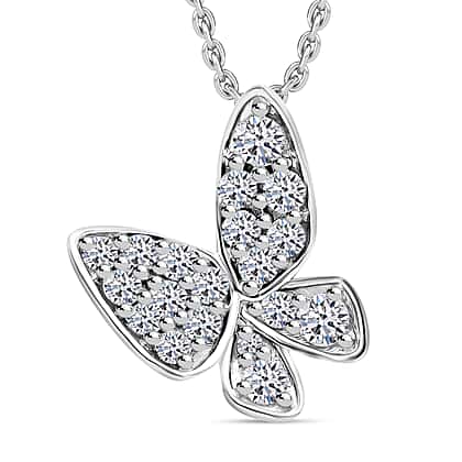 Luxuriant Wings of Sparkle Christmas Gift Set - Lab Grown Diamond Butterfly Pendant with Chain (Size 18-20) & Butterfly Push Back Earrings in Rhodium Overlay Sterling Silver SI-GH