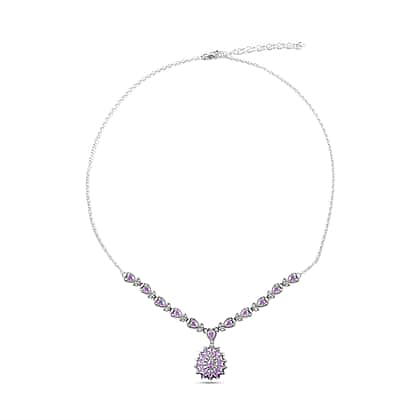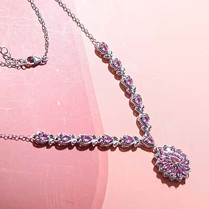 Madagascar Pink Sapphire Necklace (Size - 18-2 Inch Ext.) in Rhodium Overlay Sterling Silver 3.77 Ct, Silver Wt. 10 Gms