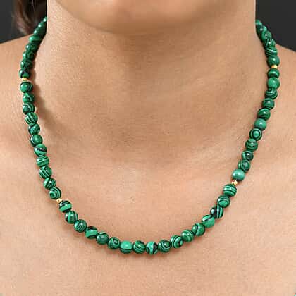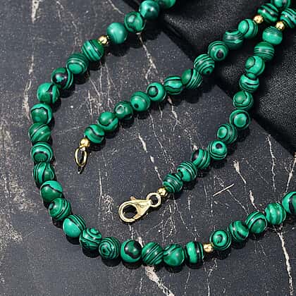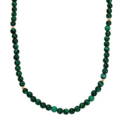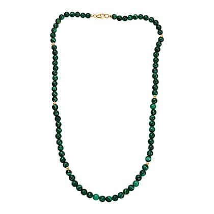 Malachite Necklace (Size 20) with Lobster Clasp in 18K Yellow Gold Plated Sterling Silver 108.11 Ct.
