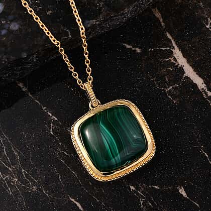 Malachite Pendant with Chain (Size 20) in Yellow Gold Plated 19.20 Ct.