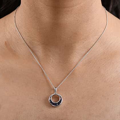 Defined by its striking contrast and graceful simplicity, this stunning pendant features a Masoala sapphire in a deep blue hue, radiating a sophisticated charm. The striking open circle design captures attention, making it suitable for evening glamour. Meticulously crafted in rhodium overlay on 925 sterling silver, this pendant ensures durability and enduring shine. The hypoallergenic properties of the metal make the piece safe and secure for sensitive skin. Features a matching chain for versatile wear and comfort fit, making it ideal for personal styling and gifting. Experience the beauty of subtle artistry with this pendant.