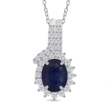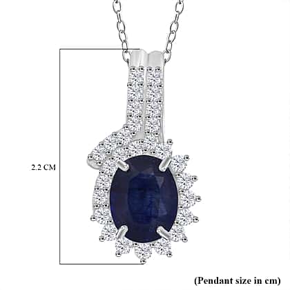 Masoala Sapphire & White Zircon Pendant with Chain (Size 20) in Rhodium Overlay Sterling Silver 3.75 Ct.
