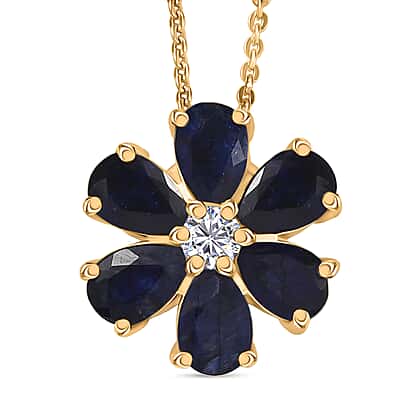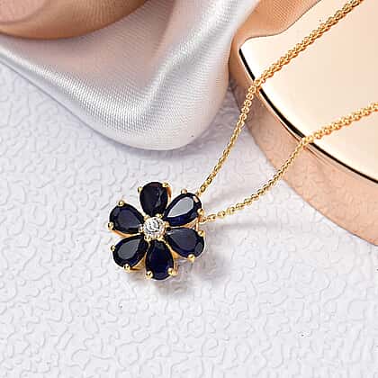Displaying nature's beauty with this floral-inspired pendant, featuring masoala sapphire in deep blue, symbolises wisdom and trust. The pear-shaped sapphires are carefully arranged to create a delicate flower design that radiates beauty. The dazzling white zircon, lying at the centre of the piece, radiates brilliance and shine. Meticulously crafted in yellow gold plating on 925 sterling silver, this pendant offers durability and lustrous shine. The hypoallergenic nature of the metal makes the piece safe and secure for sensitive skin. Features a matching gold-tone chain with a lobster clasp, this pendant offers comfort and security. The contrast catches attention, creating a striking piece that suits every special occasion. This exquisite pendant is a perfect piece for meaningful gifting to your loved ones.