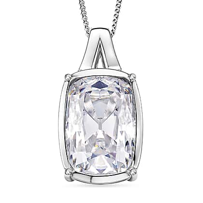 Moissanite Cushion Cut Pendant with Chain (Size 18) in Rhodium Overlay Sterling Silve 10.00 Ct.