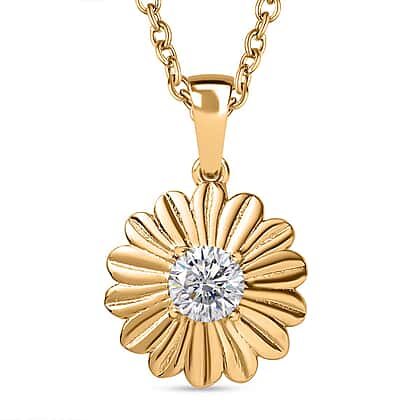 Moissanite Floral Pendant with Stainless Steel Chain (Size 20) in 18K Yellow Gold Vermeil and Rhodium Plated Sterling Silver