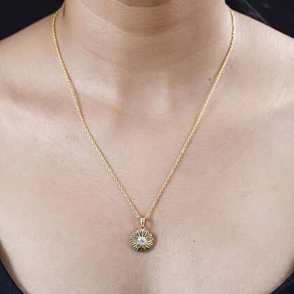 Fresh as a daisy, this Moissanite Floral Pendant with a Stainless Steel Chain is going to fill you with a burst of energy and hope. The magnificent pendant designed with a moissanite is clothed in the royal sheen of 18K Yellow Gold Vermeil and the timeless elegance of Rhodium Overlay Sterling Silver.