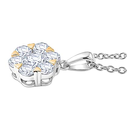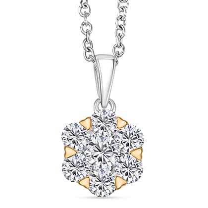 Moissanite Cluster Pendant with Chain (Size 20) in Yellow Gold Plated & Platinum Overlay Sterling Silver 1.28 Ct.