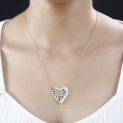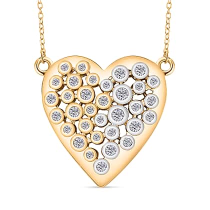 Moissanite Fire and Ice Heart Necklace (Size - 20) in 18K Vermeil Yellow Gold Plated Sterling Silver 1.50 Ct.