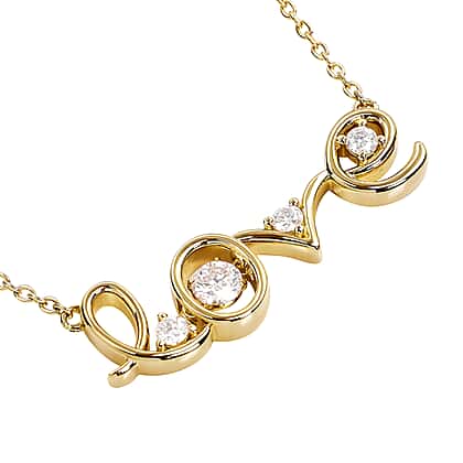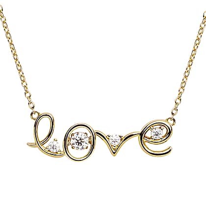 Moissanite Love Necklace (Size - 18) in Yellow Gold Overlay Sterling Silver